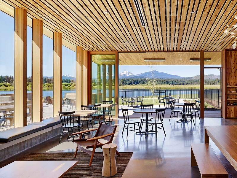 据亿伽洗浴设计了解,水疗中心1.5万平方英尺的“湖畔”项目取代了原来老旧的主要泳池设施,使牧场的“心脏”地带重新焕发活力。项目配备带有露天座位的酒馆、室外游泳池、热水浴缸、更衣室、儿童和青少年活动中心等。设计的主要目标为:在场地融入太平洋西北地区的现代主义风格;加强建筑与景观的联系;提高用户体验。