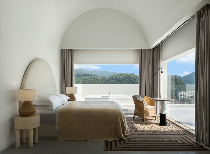 空间设计的核心思想是“优雅度假”,满足客人视觉盛宴。整体空间以纯白色为基调,结合碧海蓝天,将异域度假的松弛感表达尽致,在日出日落中,行进其间,仿若置身山海自然中,一切琐事化为虚空,这也是设计师和品牌传达给旅人的善意。