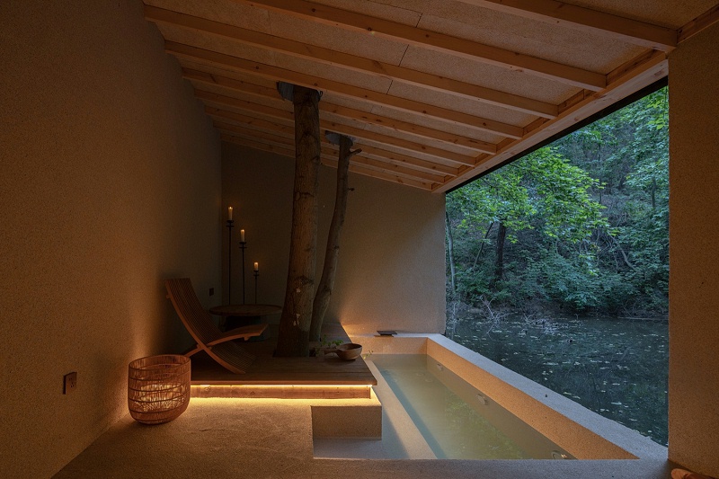 亿伽设计-洗浴设计-温泉设计-温泉疗愈木屋:树木参天之景观融入私汤