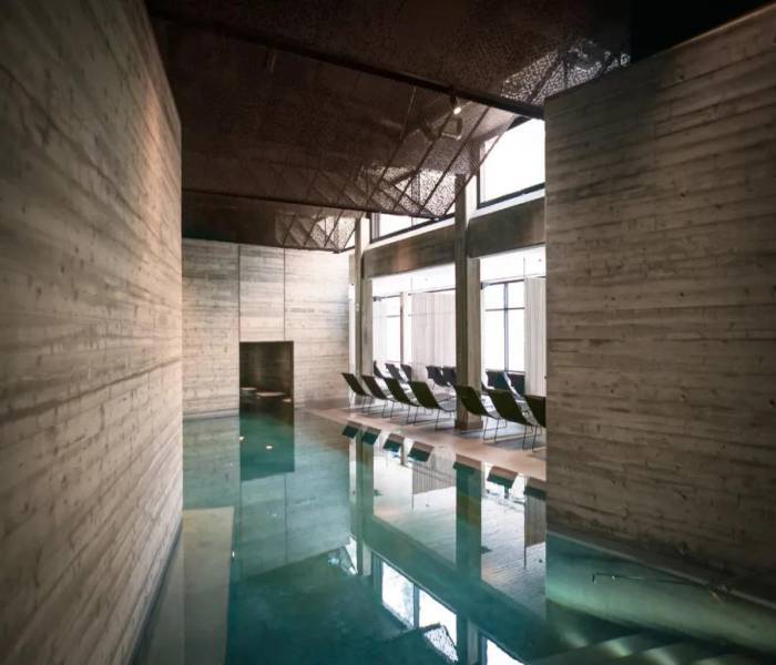 该建筑的历史可追溯至1974年,由日本建筑师设计,拥有大量的原始混凝土,并配以深色木材和玻璃。在2017年对建筑进行了彻底的重新改造,在美丽而宁静的位置建造了一座引人注目的建筑,并着手打造欧洲最好的水疗中心。